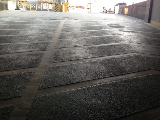 鴻坤無震動止滑車道材料適用于車庫坡道、道路、公交車道、自行車道、人行道等有特殊防滑要求的部位、區域。